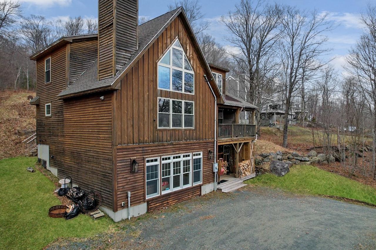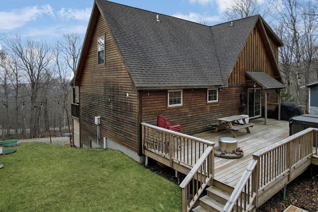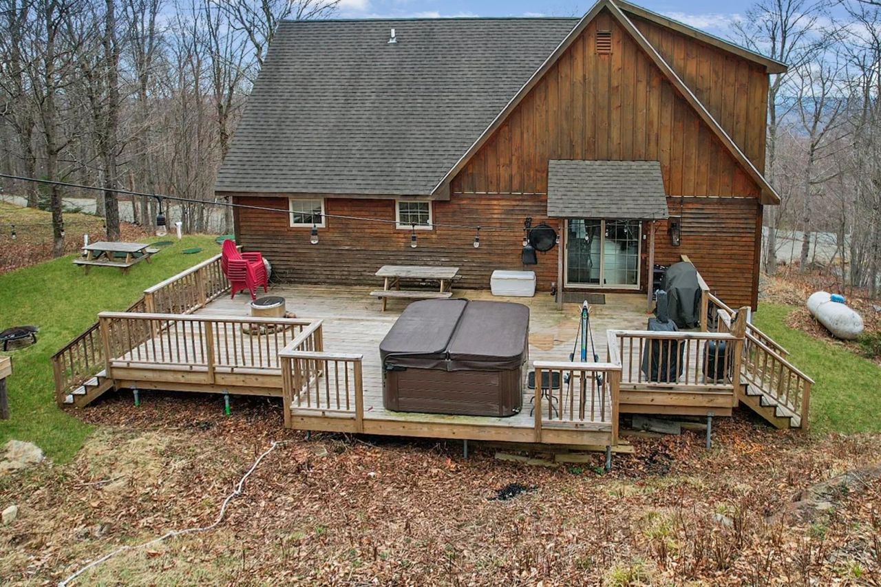 Turnkey mountain retreat with style, space, and serious four-season fun?welcome to Chimney Hill living at its best. This beautifully crafted 4 bedroom home offers 4 full tiled baths and approximately 3,000 sq ft of warm, inviting living space on 3 levels designed for gathering, relaxing, and making memories. The open concept main level delivers instant wow factor with soaring cathedral ceilings, rich natural woodwork, gorgeous wood flooring, and a stunning timber frame beam. A dramatic south-facing wall of windows floods the home with natural light, while the stone-faced woodburning fireplace creates the perfect aprs-ski atmosphere. The kitchen is built for entertaining with granite countertops, a large seating island, stainless appliances, and abundant cabinetry. You'll also find a custom bar area, full bath, ensuite bedroom, and easy access to both the covered front porch and new back deck with hot tub. Upstairs offers two spacious, light-filled bedrooms and a full tiled bath. The lower entry level is built for real mountain living with radiant heat throughout, a showpiece tiled mudroom with cubbies, benches, shelving, and storage baskets, plus a laundry room with counters, cabinets, and sink. A full tiled bath with double sinks, bonus room with proper egress window, and a massive den/game room featuring pool table, darts, basketball setup, ping pong, living area, custom art, and sliding barn door complete the space. Outside, enjoy the new huge back deck with hot tub, ski lift chair feature, and additional rear deck space, plus covered front porch and outdoor lockable ski storage. The home is tastefully furnished throughout and features central vacuum & smart features for interior/exterior lights, thermostats, hot tub, keyless entry. Chimney Hill offers true four-season amenities including a clubhouse w/ indoor/outdoor pools, hot tub, sauna, fitness room, game room, etc. Septic system is designed for 3 bedrooms.